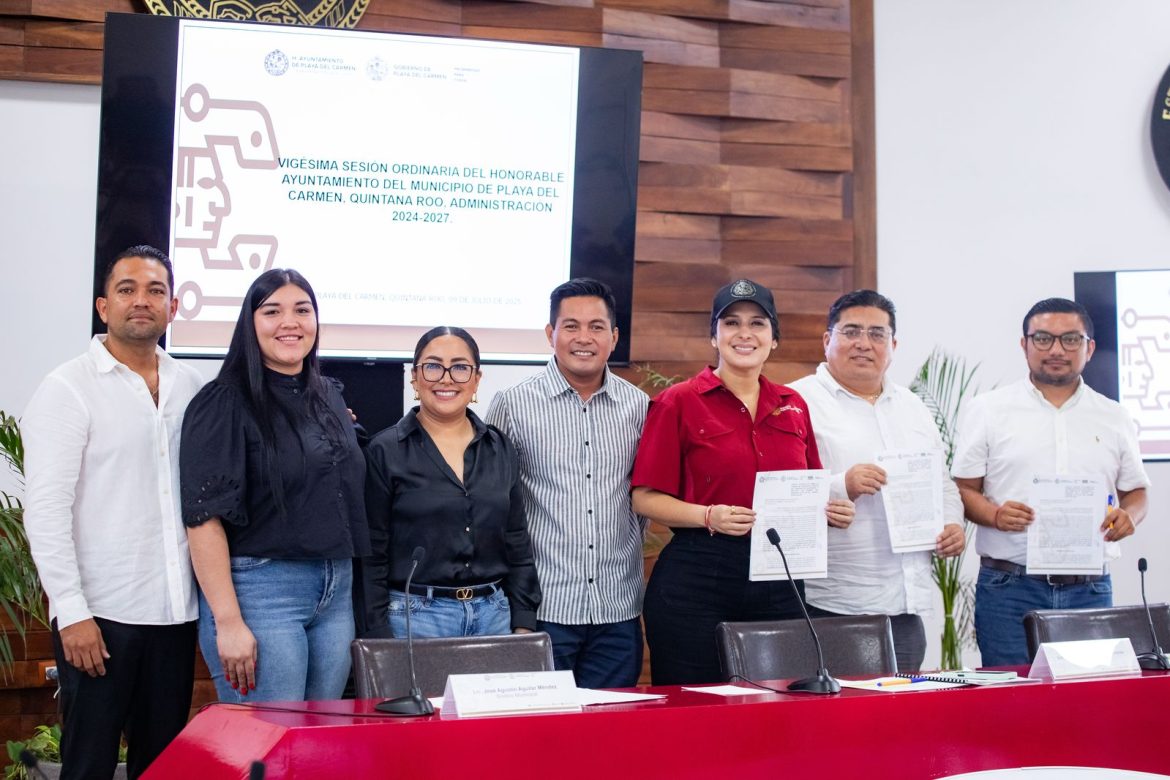 Playa del Carmen, Quintana Roo, 9 de julio de 2025.– En una muestra del compromiso con el bienestar de las familias playenses, el Cabildo de Playa del Carmen, encabezado por la presidenta municipal Estefanía Mercado, aprobó dos acuerdos relevantes para la ciudadanía: el Programa de Estímulos Fiscales de Verano 2025 y la declaratoria del Teatro de la Ciudad “Xaman Ha” como recinto oficial para la celebración del 32 aniversario del municipio.