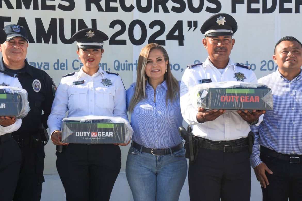 Playa del Carmen, Solidaridad a 8 de agosto del 2024.- “Gracias presidenta porque esta es una forma de demostrar la importancia de ver y trabajar por la Policía Municipal, por este equipo que todos los días se prepara y trabaja para construir la Paz en Solidaridad y entregar estos importantes resultados que podemos ver y que con orgullo les reconozco”, sentenció Osiris Ceballos Díaz, director de la Policía Turística de Solidaridad durante la entrega de uniformes.