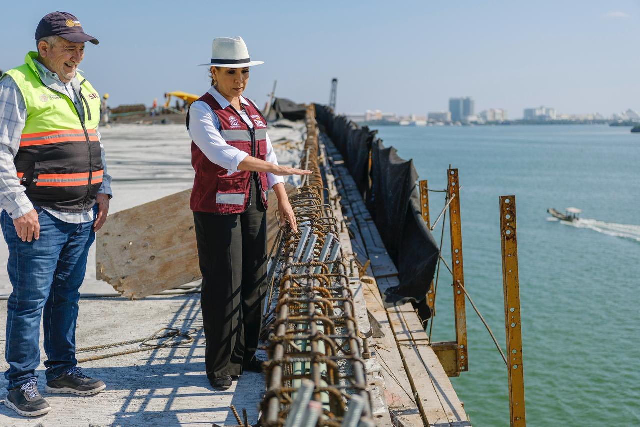 Durante un recorrido de supervisión, la mandataria estatal anunció que ya fue colocada la última estructura que conecta ambos extremos del puente, una obra considerada estratégica para la movilidad en Cancún.