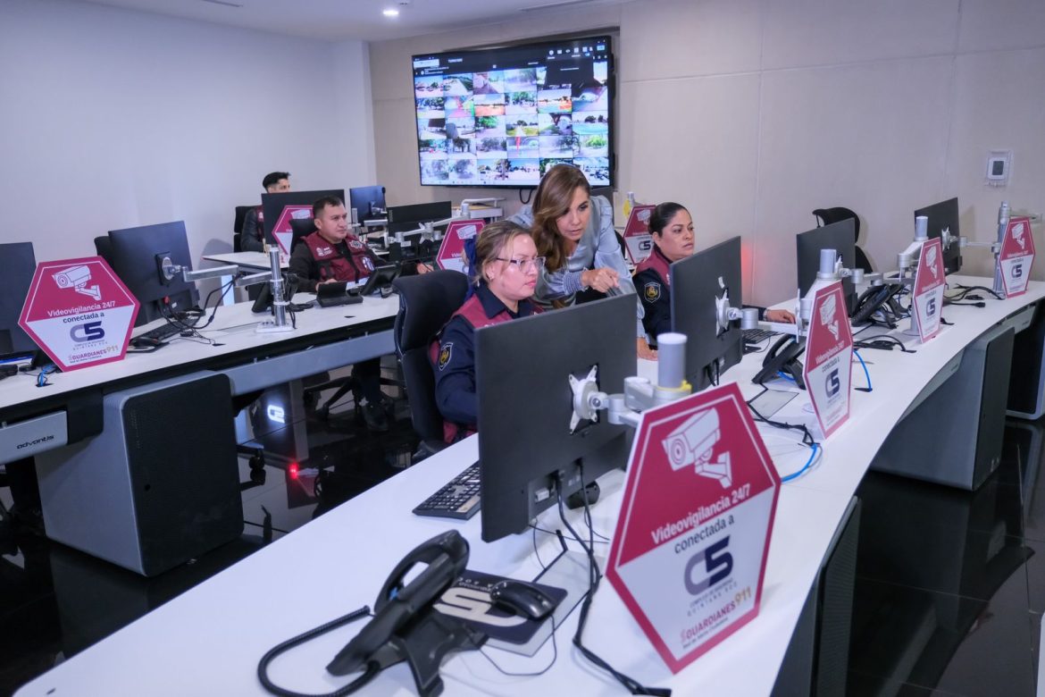 Cancún.- La gobernadora Mara Lezama Espinosa anunció, desde el Complejo de Seguridad C5, la instalación de la cámara de vigilancia número mil del programa “Guardianes 911” en Quintana Roo.