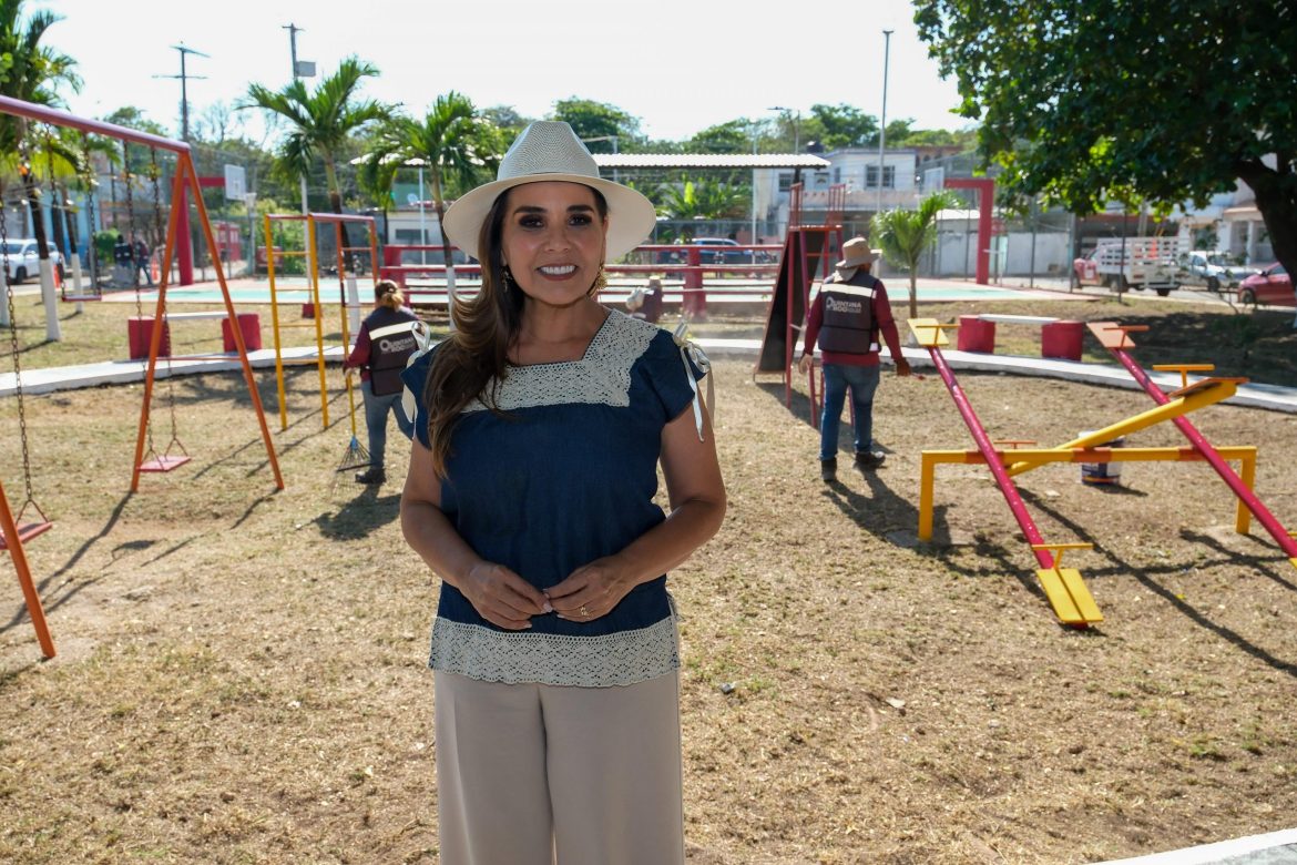 Chetumal.- El parque Las Palmeritas, del fraccionamiento Payo Obispo, es otro espacio recuperado para devolvérselo a la comunidad, después de su rehabilitación a través de las brigadas del programa “Rescate, limpieza y dignificación de espacios públicos” del gobierno del estado, lo que fue constatado por la gobernadora Mara Lezama Espinosa.