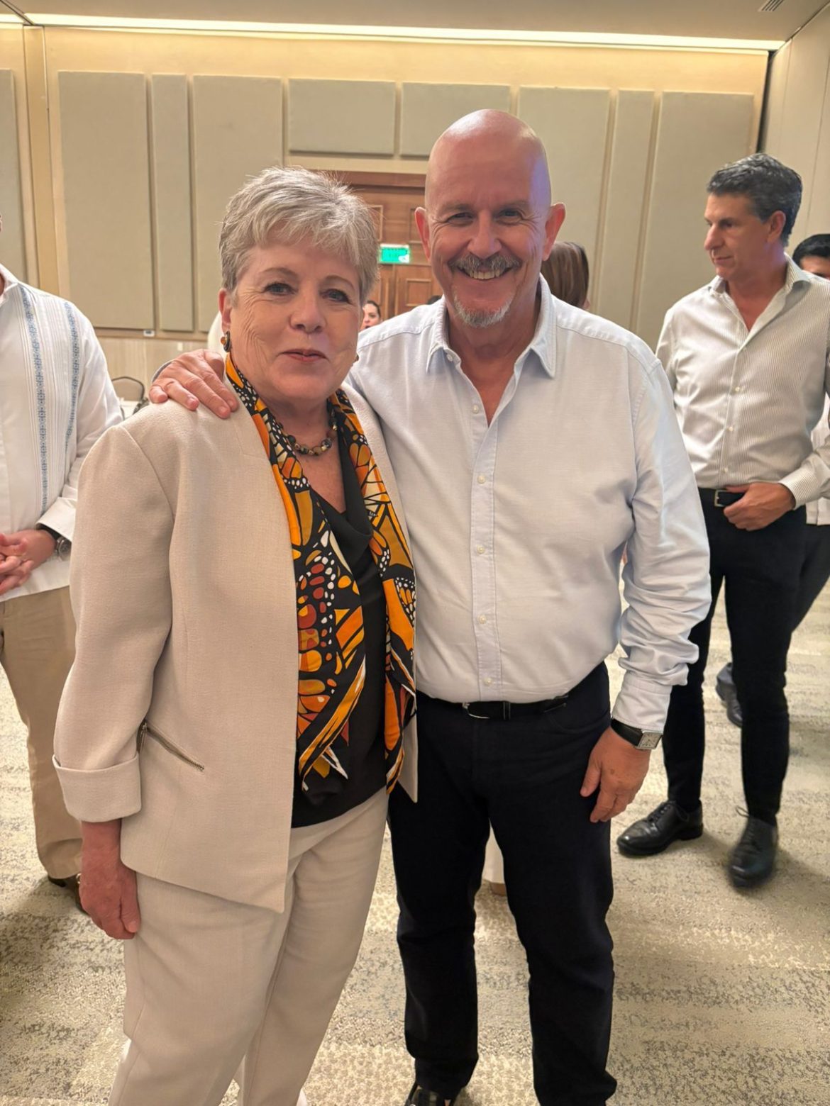 También saludó a los voluntarios de diferentes sectores sociales como: Confederación Revolucionaria de Obreros y Campesinos (CROC), Hotel Iberoestar, Grand Oasis Cancún, The Pyramid Cancún, UNIMAAT, Universidad de Quintana Roo (UQROO), Instituto Tecnológico de Cancún (ITC), Servicio Militar Nacional (SMN), Labor Social de la Guardia Nacional, Secretaría de Marina, Secretaría de la Defensa Nacional (SEDENA), Parque Nacional Occidental de Isla Mujeres, Punta Cancún a Nizuc, Asociación Femenil de Ejecutivas de Empresas Turísticas de la República Mexicana (AFEET), Asociación Nacional de Instituciones de Educación Privada (ANIEP), así como ciudadanos en general.